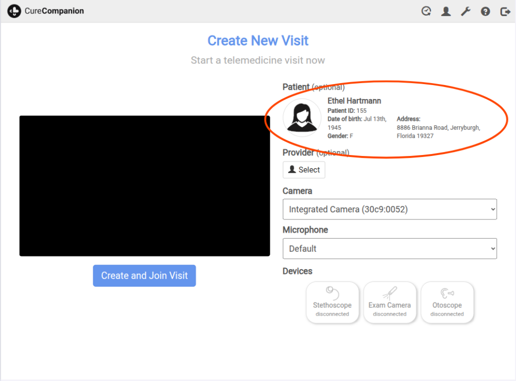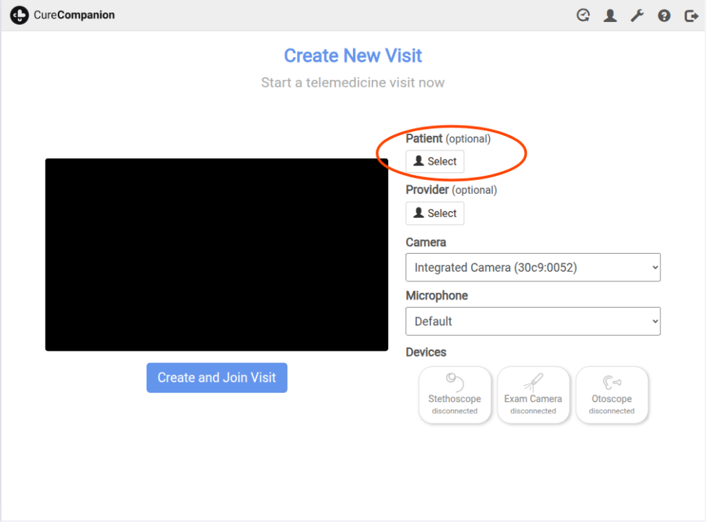1. Click the “Create and Join Visit” button.
